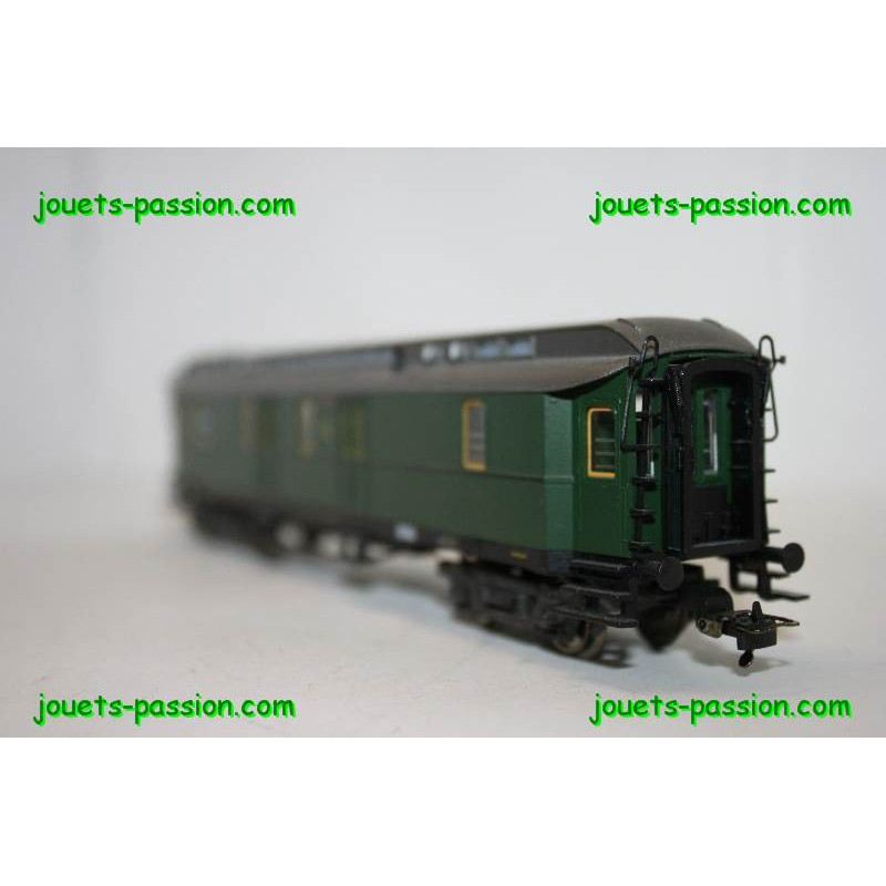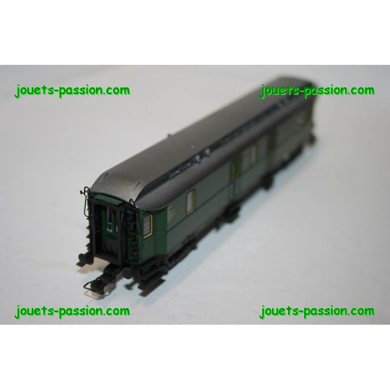 Pour les passionnés de modélisme ferroviaire ! Ce fourgon à bagages Fleischmann, référence 5079, échelle HO (1/87), est un modèle d’occasion en bon état. Fabriqué en plastique, alimentation en courant continu, il représente un fourgon postal 4Ü N°3142. Parfait pour agrémenter votre réseau de train miniature. Origine : Allemagne. Le vendeur indique de consulter la fiche de description pour plus de détails. Une pièce authentique pour les amateurs de précision et de détails réalistes !